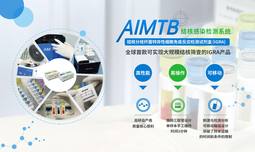 基于全免疫體外診斷核心技術(shù)平臺,雷德倍爾創(chuàng)新研發(fā)的AIMTB結(jié)核感染檢測系統(tǒng)已經(jīng)于2019年獲得國家藥監(jiān)局注冊批準(zhǔn)上市。AIMTB基于IGRA技術(shù),實驗使用的結(jié)核分枝桿菌基因中含有特異性的RD1區(qū)域的E6和C10兩個強免疫原性抗原,檢測結(jié)果具有相當(dāng)高的敏感性和特異性。