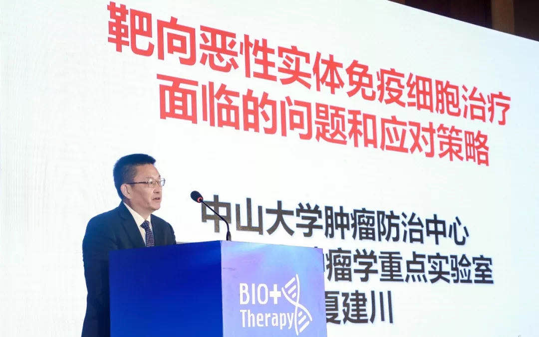 會(huì)議由中山大學(xué)附屬腫瘤醫(yī)院生物治療中心夏建川主任拉開腫瘤免疫治療研討會(huì)的帷幕,夏主任提出了靶向惡性實(shí)體腫瘤免疫細(xì)胞治療面臨的問題,并提出了應(yīng)對(duì)策略,他認(rèn)為應(yīng)該向增強(qiáng)型免疫細(xì)胞治療技術(shù),單/多靶點(diǎn)免疫細(xì)胞聯(lián)合治療方向進(jìn)行研究,并建議標(biāo)準(zhǔn)化免疫細(xì)胞制備和腫瘤免疫細(xì)胞治療臨床轉(zhuǎn)化規(guī)范。