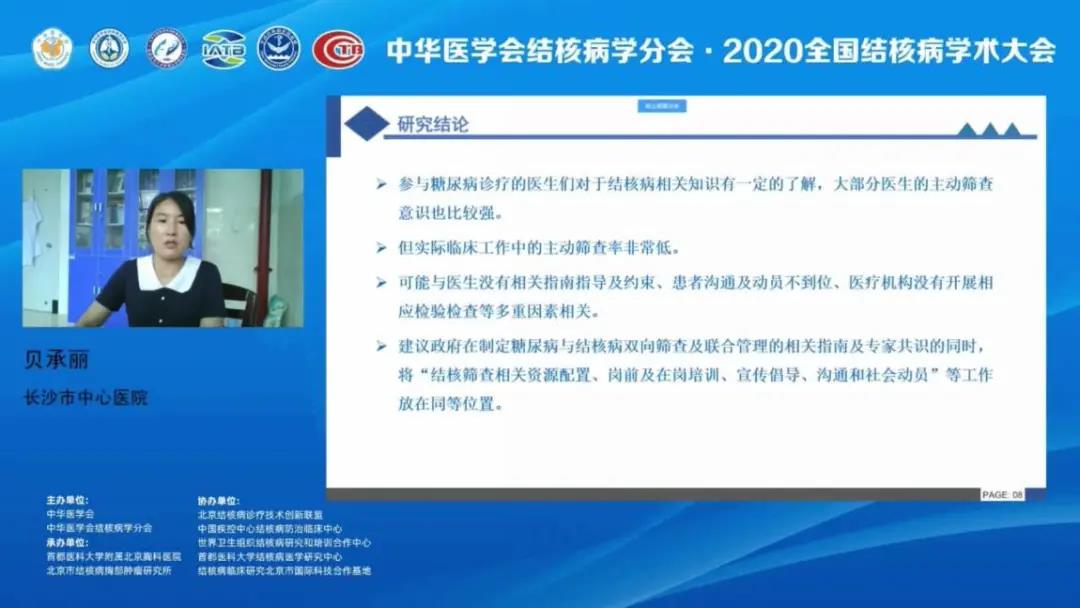 長沙市中心醫(yī)院貝承麗就如何在糖尿病患者中篩查結(jié)核病的專題作了報告,她指出,肺結(jié)核和糖尿病均是發(fā)病率高,嚴重威脅人類健康及生命的全球性疾病。2019年1月,WHO提出了雙向篩查的必要性,但目前在我國國情下如何進行雙向篩查仍存在問題,應(yīng)基于國情下制定初步防治活動計劃。